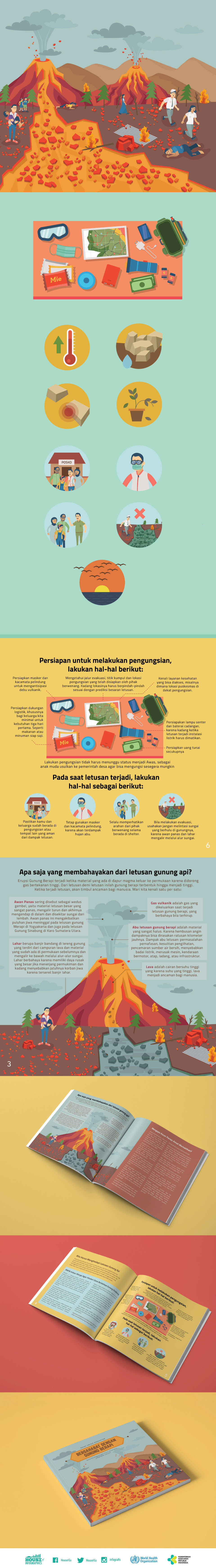 The result is a cohesive infographic publication that bridges visual design and volcanic disaster education. By integrating illustration, iconography, and editorial layout systems, this project demonstrates how graphic design can serve as a strategic communication tool for public safety, delivering essential information with clarity, consistency, and strong visual logic.